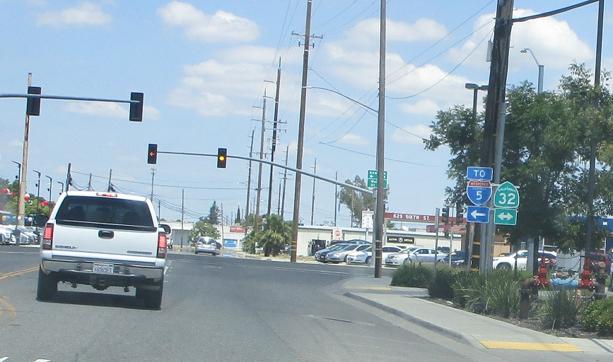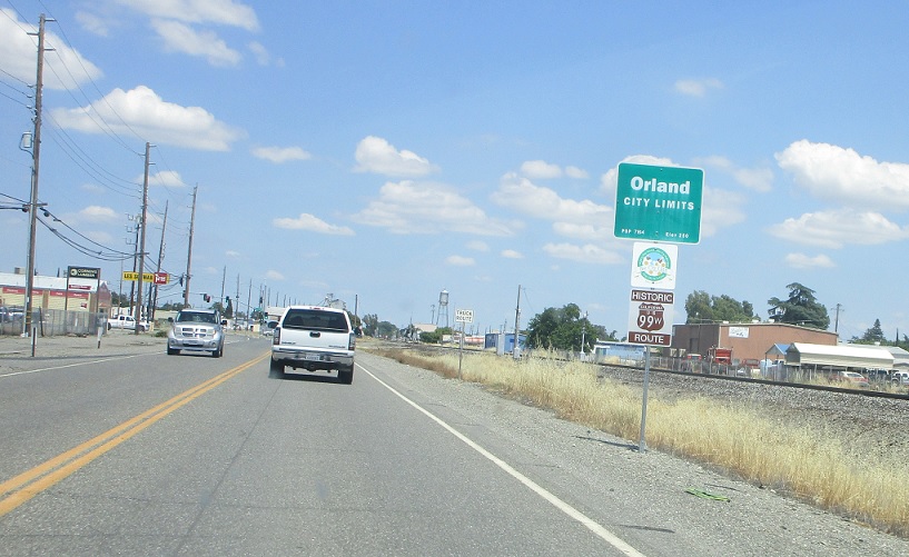 In downtown Orland we’ll approach SR 32. Turn left for 32 west to I-5. Turn right for 32 east to Chico. Stay straight to stay on I-5 Business.