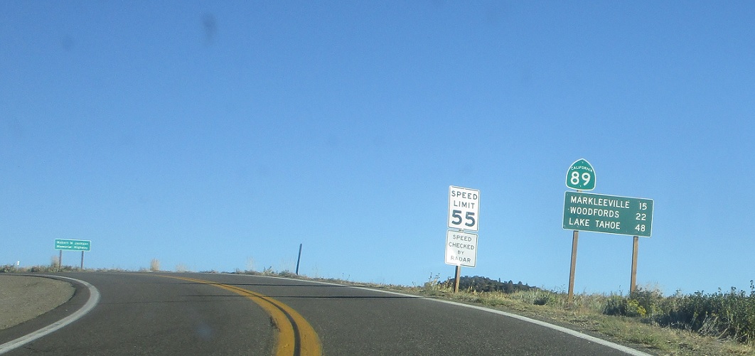 Reassurance shield as SR 89 begins. 89 is one of California’s longer state highways, heading all the way up to Mt. Shasta.
