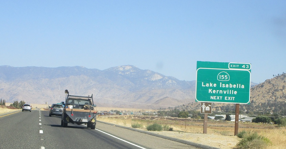 Reassurance shield as 178 turns into a freeway and we pass the first Lake Isabella exit.