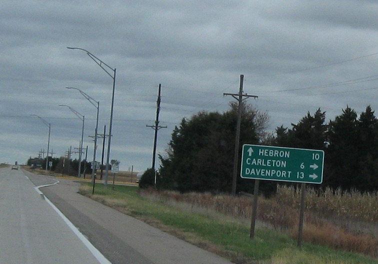 Follow US-81 South towards Hebron and N-4 West towards Carleton and Davenport