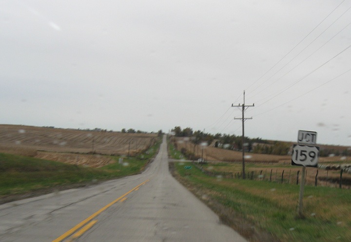 A couple miles later, we’ll approach the junction for US-159. This is the northern terminus of US-159, a short US highway that heads west into Nebraska, then south to Kansas, ending at US-59 in Nortonville. Total route length is only 85 miles