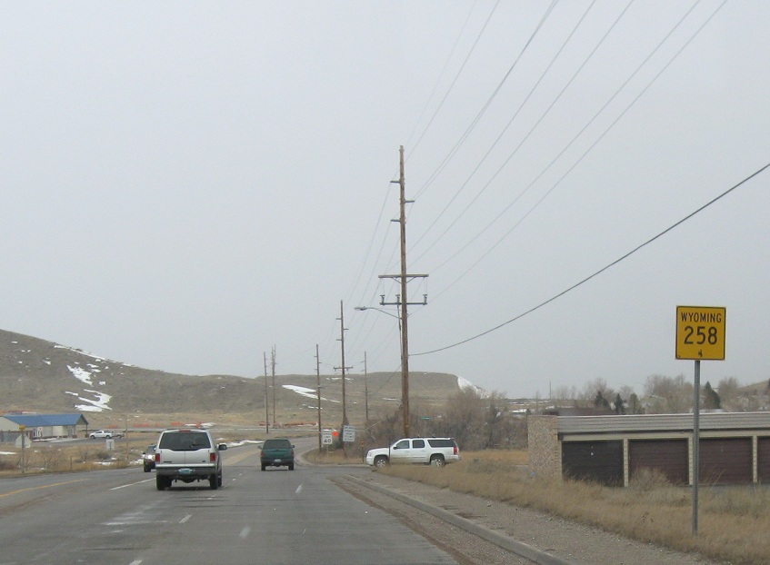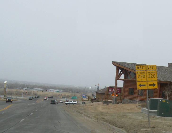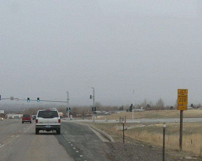 Junction Wyoming 220 coming up. 220 is the main artery for traffic coming into Casper from the west, so it gets well-treated