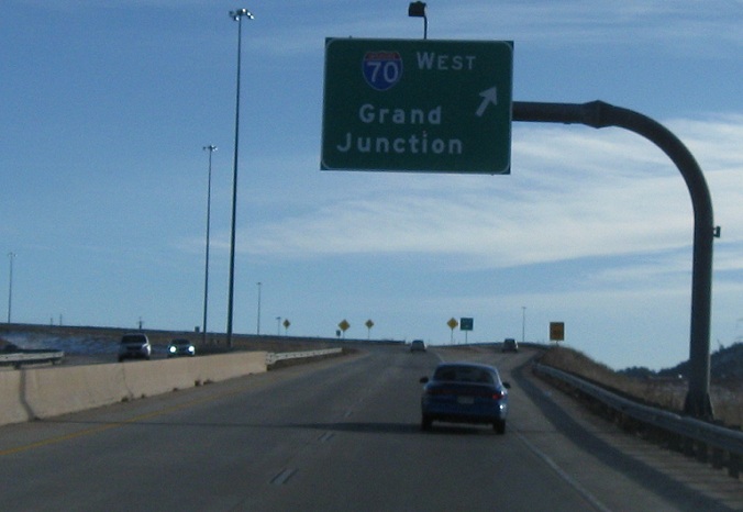 We’ll quickly come to a junction with I-70. There is no access to I-70 East, but exit right for I-70 west towards Grand Junction