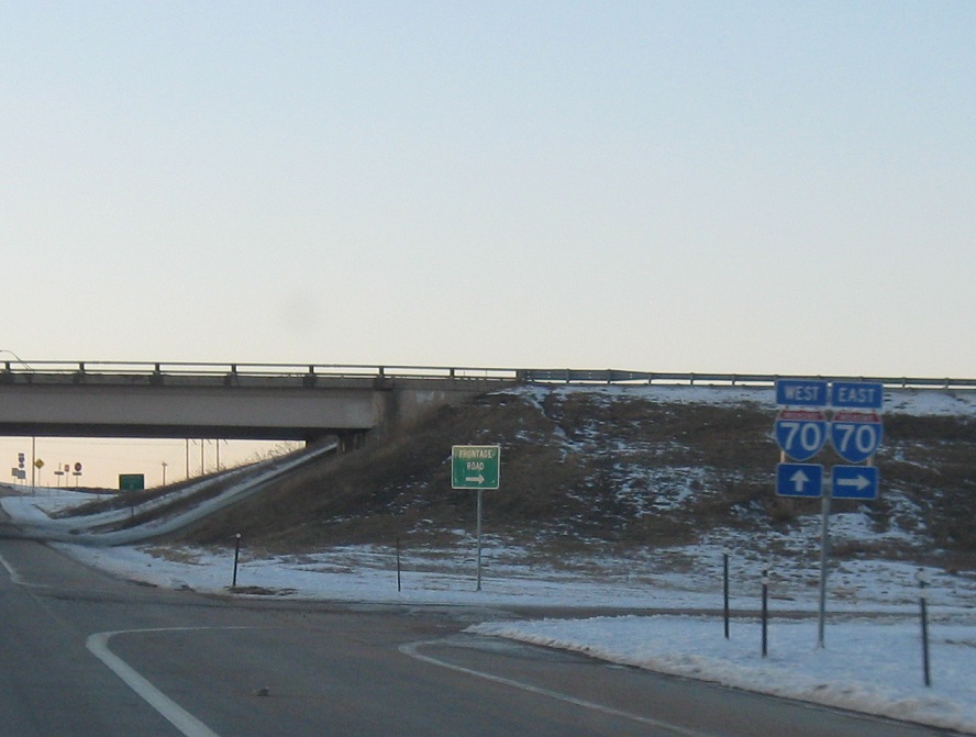 Turn right for I-70/unsigned US-24 East ,which heads towards Kansas. Stay straight for I-70 West