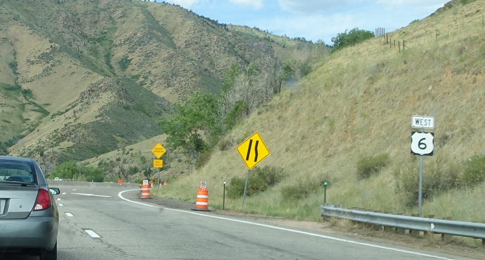 Reassurance shield after the 58/93 junction as we head out of Golden. we’ll enter a narrow, highly trafficked 40 MPH canyon where everyone speeds and the cops run rampant.
