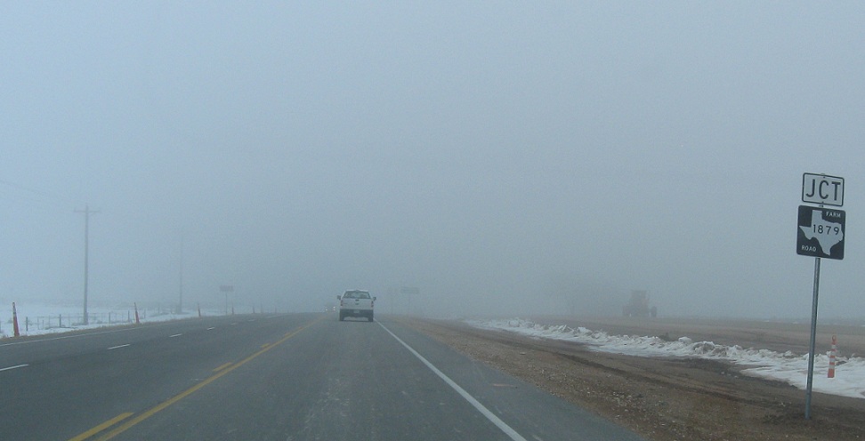 A couple miles later, we’ll come to a junction with FM 1879 as the divided highway ends