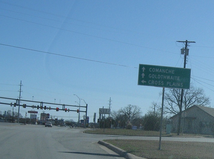 Follow 67 north towards Comanche, 84 east towards Goldthwaite, and 279 north towards Cross Plains