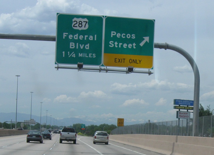 Just after Broadway, we’ll come to Pecos St. Just after that, we’ll get to US-287/Federal