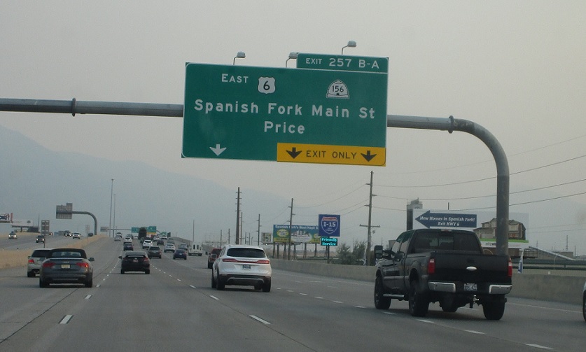 Just after that, we’ll approach US-6. 6 east will head towards Price and Manti, while 6 west joins I-15. Since 2010, the US-6 and Utah 156 interchanges have been consolidated into one.