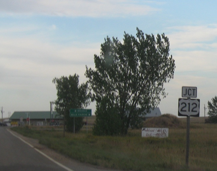Follow 212 east towards Belle Fourche, South Dakota (via Wyoming) and 212 west towards Broadus