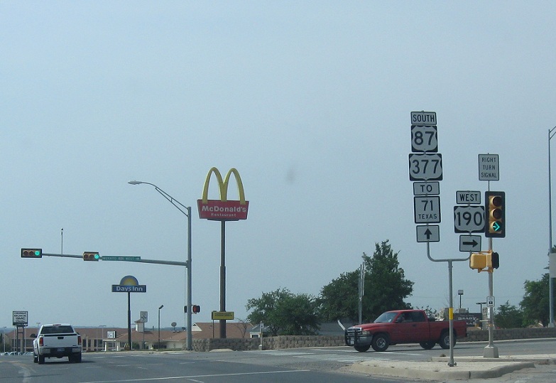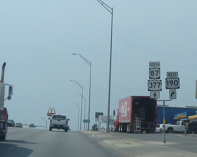 Turn right for US-190 west. Stay straight for 87/377 south to SH 71
