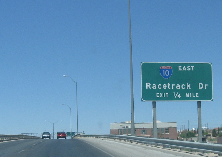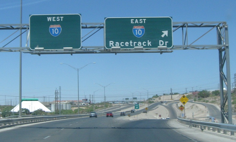 Exit for I-10 and here unsigned US-180 east/Racetrack Dr. Stay straight for I-10/US-180 west