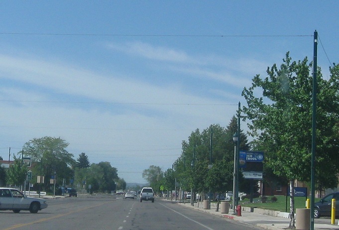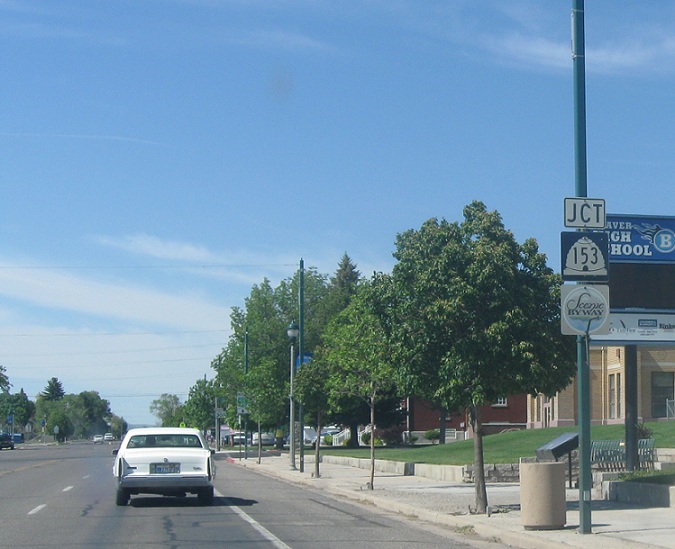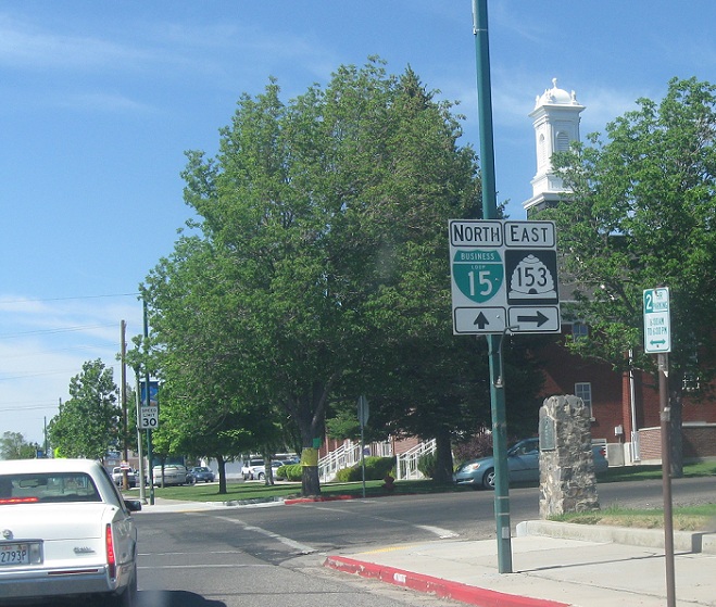 Turn right for 153. Stay straight for SR-160, signed here as I-15 Business. 153 heads over the mountains to Junction via a scenic, unpaved road.