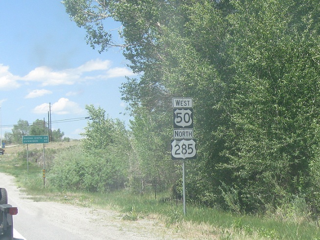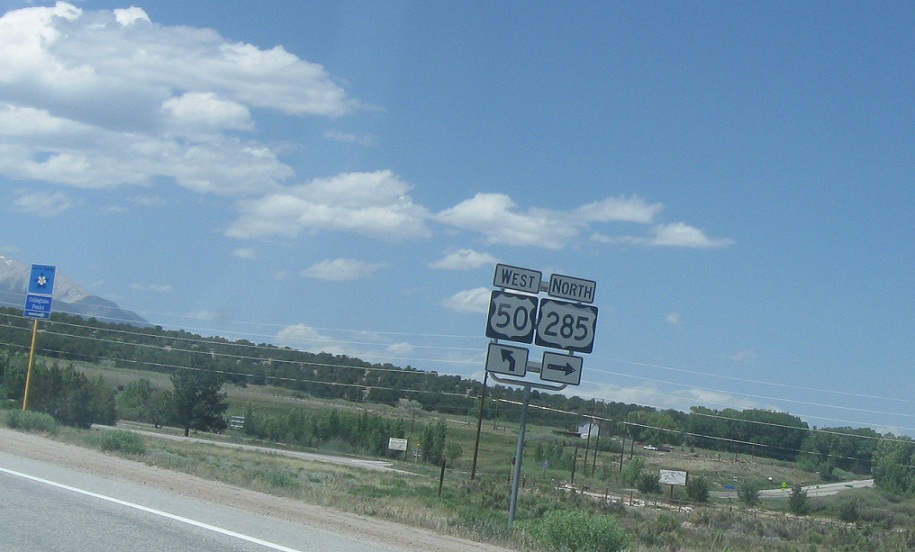 Reassurance shield as 285 joins 50. This is a short concurrency, just lasting a few blocks through Poncha Spgs