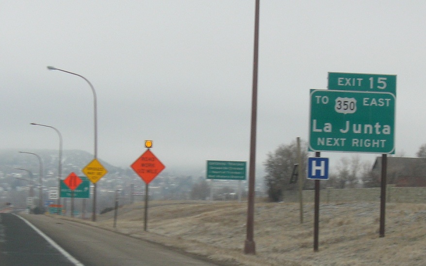 Follow US-160 East to get to US-350, an intrastate US Route that heads from Beshoar Jct east of here up to La Junta