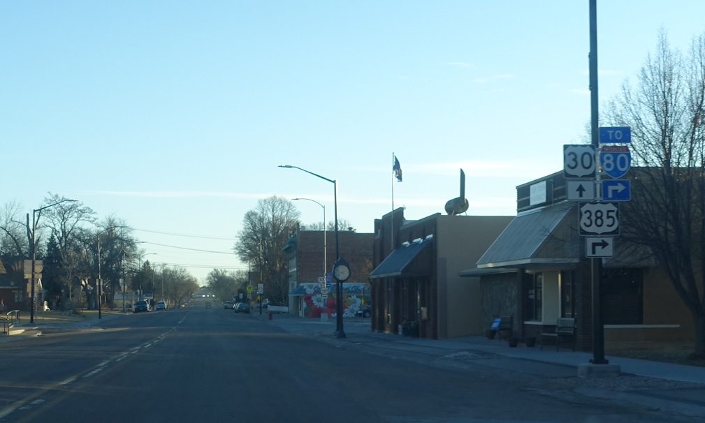 Turn right here in a block to get to I-80 (via US 385), stay straight for US 30