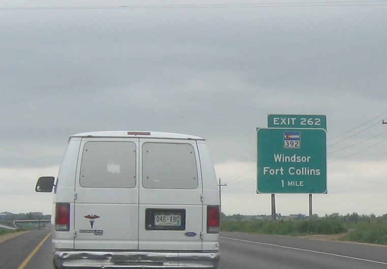2 Miles to the SH-392 exit which serves Windsor, 7 miles to US-34 which serves Greeley and Loveland