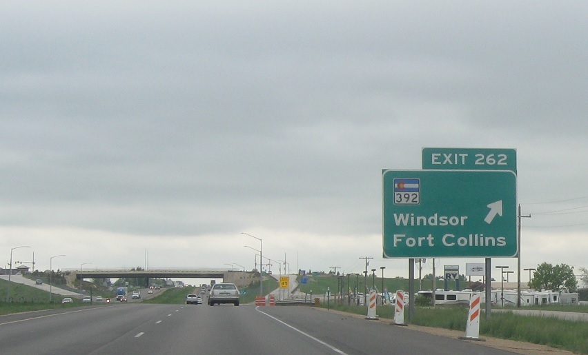 SH-392 exits, heads to east towards Windsor and west to US-287