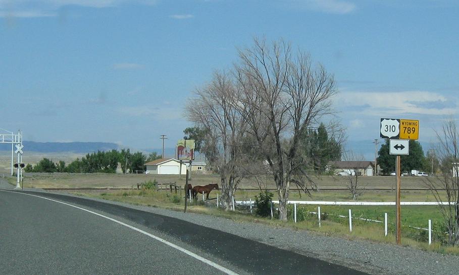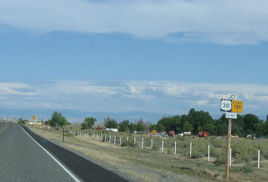 You’ll want to turn left for US-310 west/WYO 789 north, right for US-310 east/WYO 789 south.