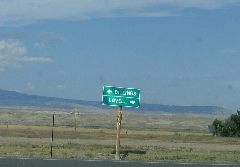 north/east heads towards Billings, Mont. and south/west heads towards Lovell.