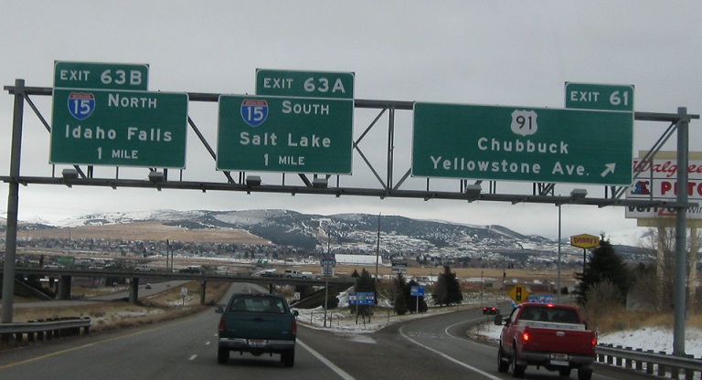 Junction US-91 coming up in a mile, which serves downtown Chubbuck