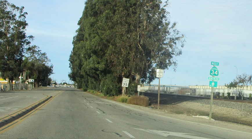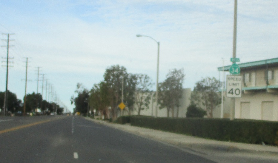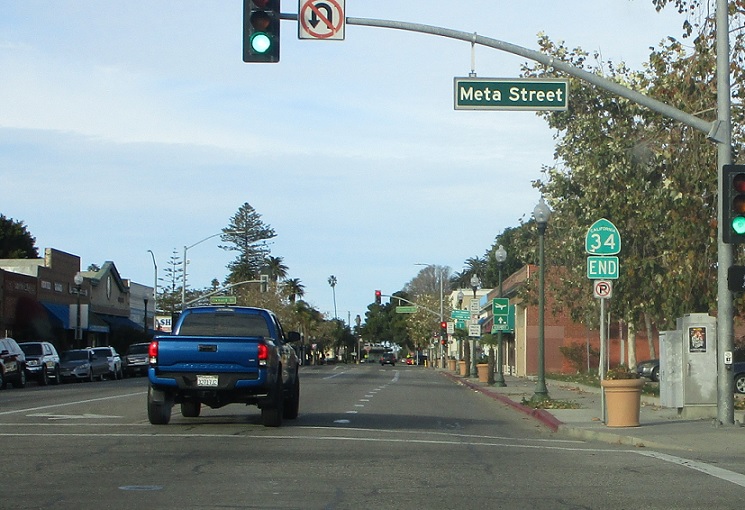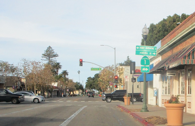 A few blocks later we’ll enter downtown Oxnard. SR 34 ends at the light ahead.