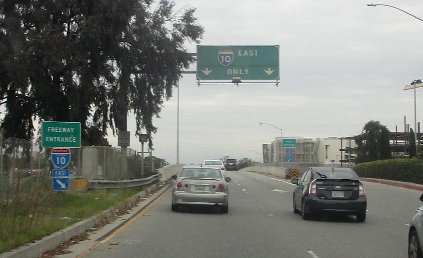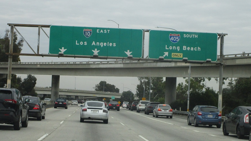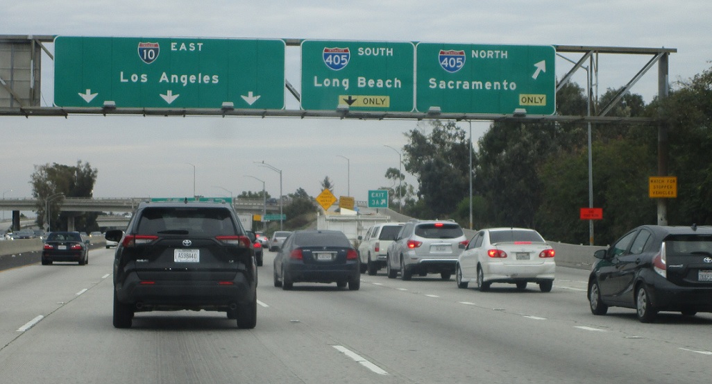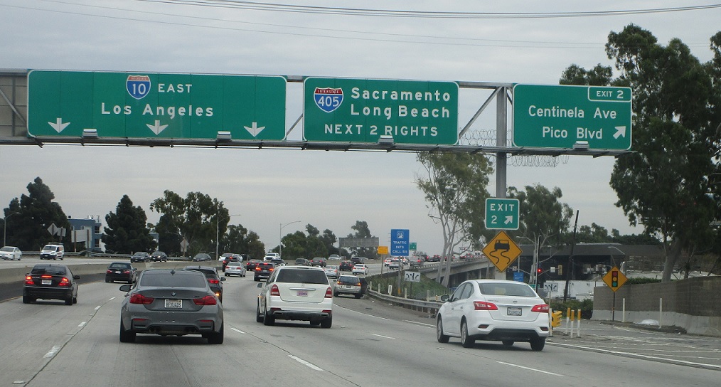Keep right ahead for I-405 in both directions. Stay on I-10 east for downtown Los Angeles.