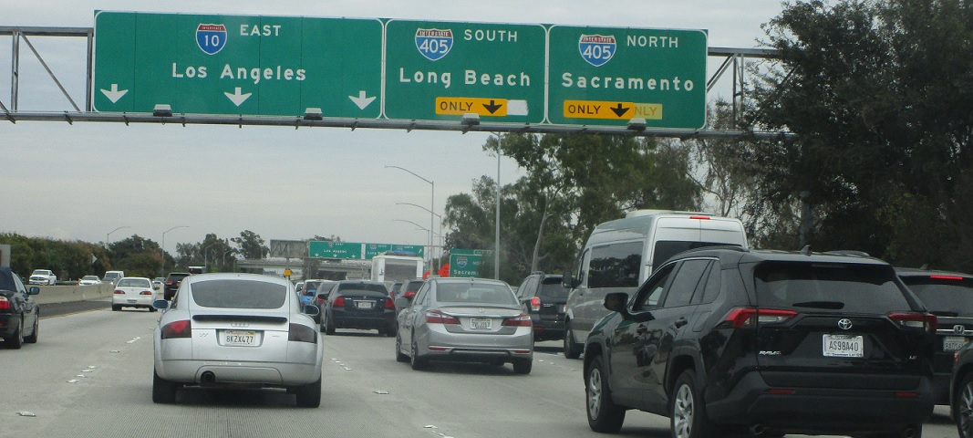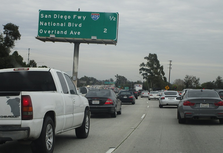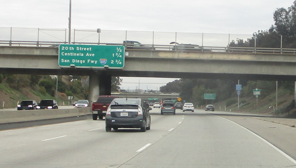 As Route 1 traffic joins the interstate we’re 2.75 miles from the I-405 San Diego Freeway.