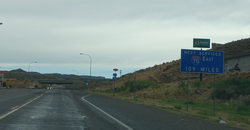 As we approach I-70 we’re reminded that there are no services on I-70 east for 109 miles.
