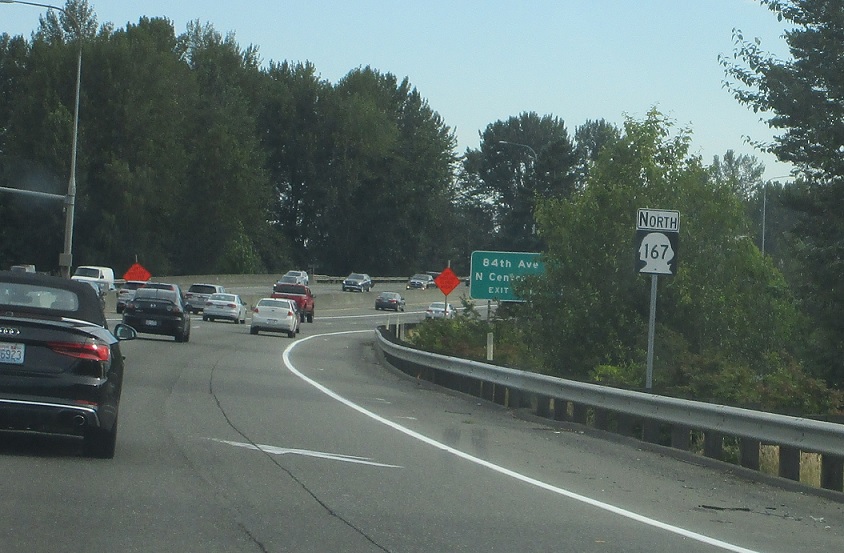 I-405 north exits, SR 167 carries on for a couple more blocks as a surface road