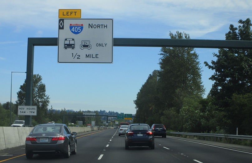 I-405 North takes an exit only lane, I-405 south will exit in a second and head to I-5.