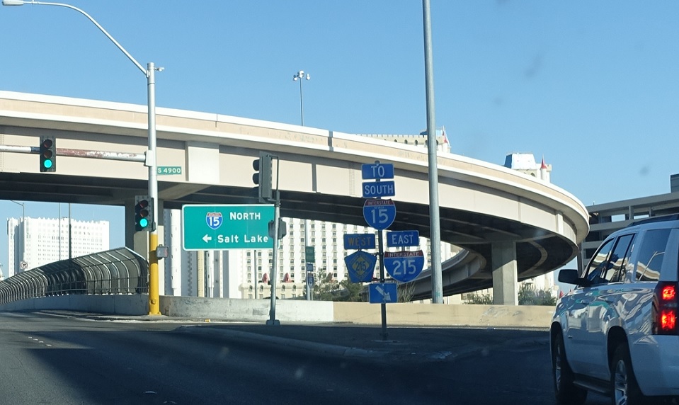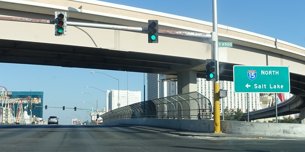 Turn left for I-15 north. Stay straight for the Las Vegas Strip.
