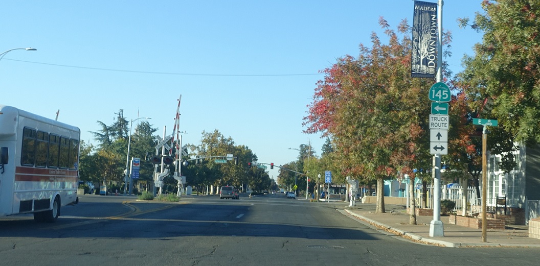 At the light, SR 145 will turn left onto old US/SR 99 south, which is SR 99 Business today.