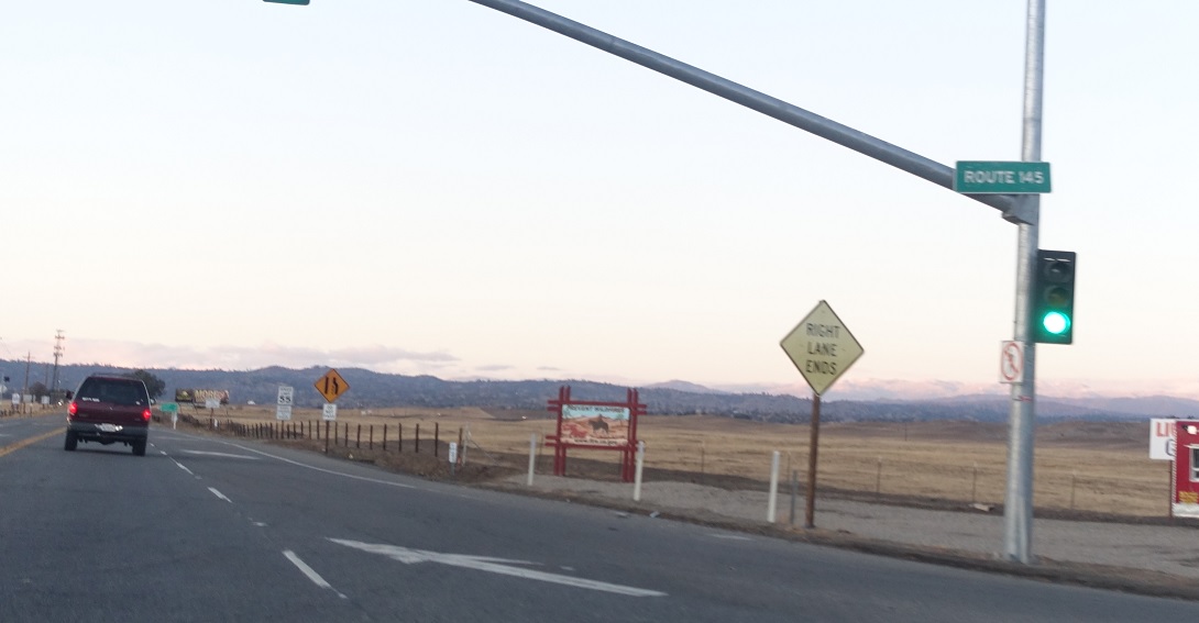 A few miles later, we’ll approach SR 145, which heads south to Madera.