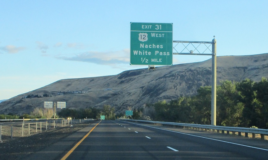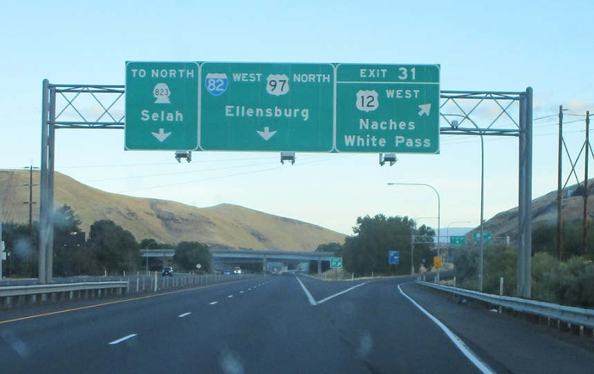 US-12 exits, left lane will exit shortly for SR 823 to Selah