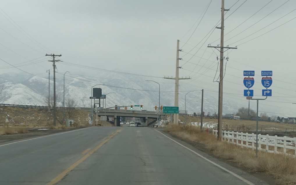 Turn right ahead for I-15 south (and US-6 west). Stay straight for I-15 north (and US-6 east).