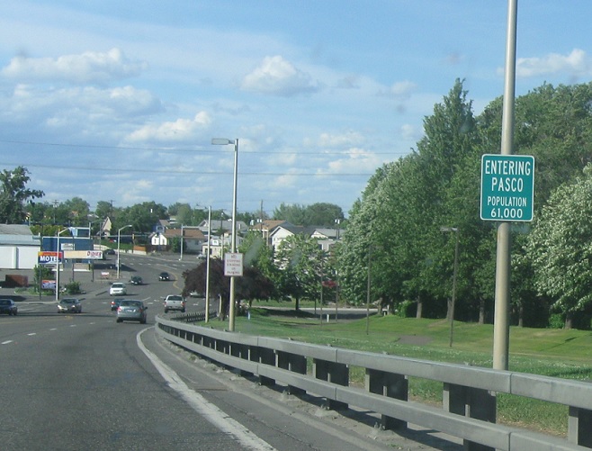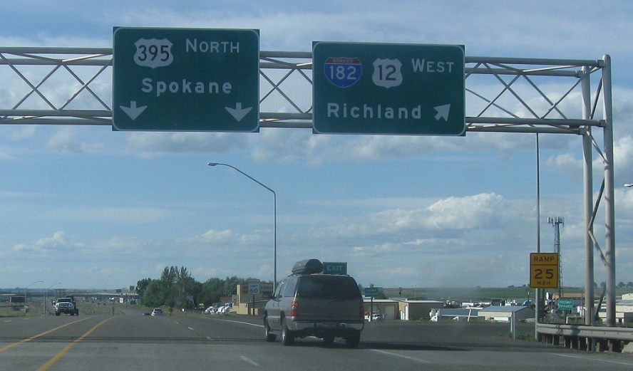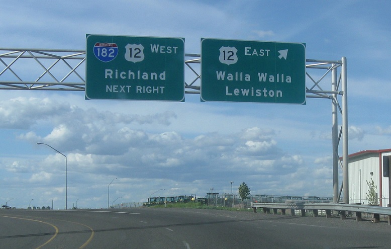 A mile or so later, we’ll approach I-182 and US 12. Follow 12 east to Walla Walla and Lewiston, ID. Follow I-182 and US 12 west (and US 395 south) to Richland. This is also I-182’s eastern terminus.