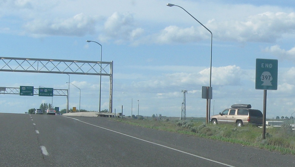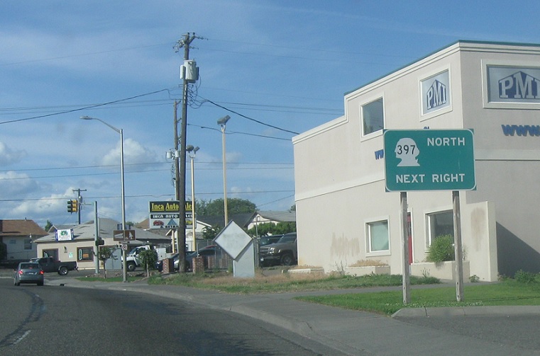 SR 397 begins down here now at I-82 and has since 2009. The road still isn’t signed as 397 though, but is well signed as the Truck Route to Finley Industrial.
