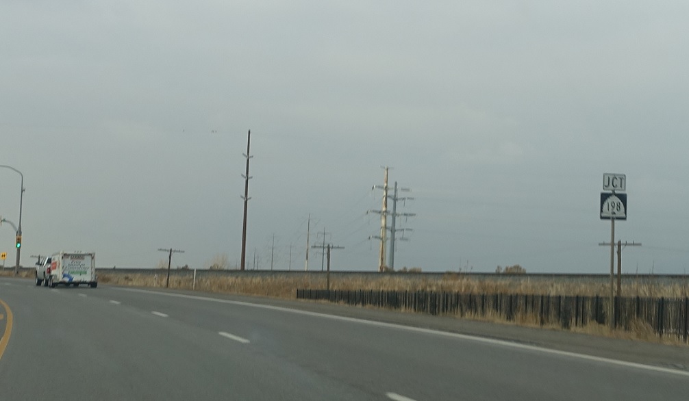 A little over a half mile later, we’ll approach SR-198. Turn left for SR-198 west into Spanish Fork. 198 is the pre-2000 alignment of US-6, which now continues to I-15 and follows it.