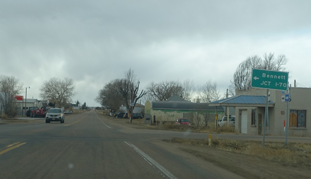 No signage for SH-79, but this is definitely 79. Follow it south to Bennett and Interstate 70.
