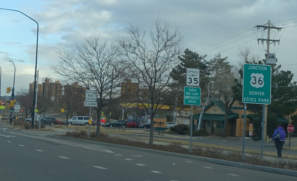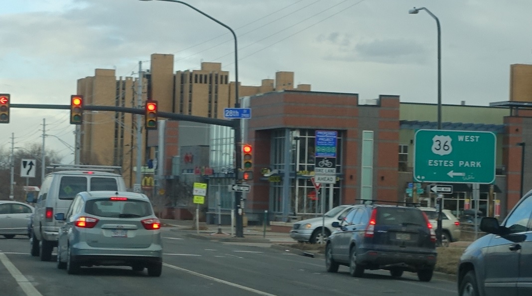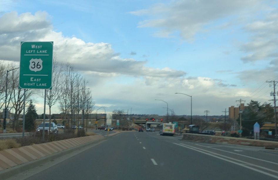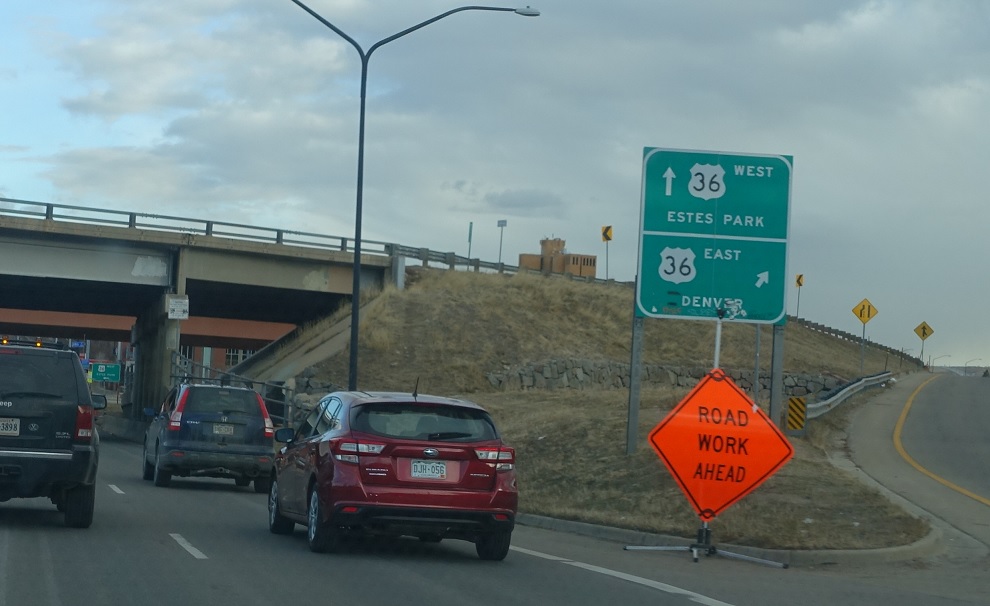 Turn left for 36 west to Estes Park. 36 Spur ends.