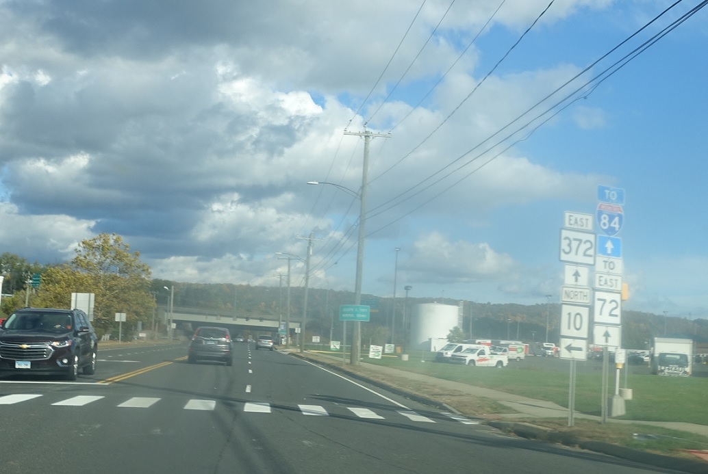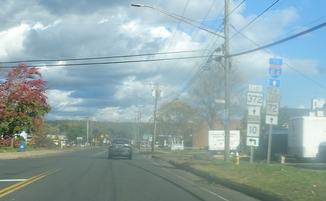 At the light ahead, turn left for 10 north. Stay straight for 372 east to I-84 and CT 72 east.