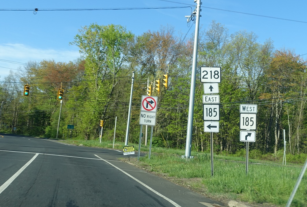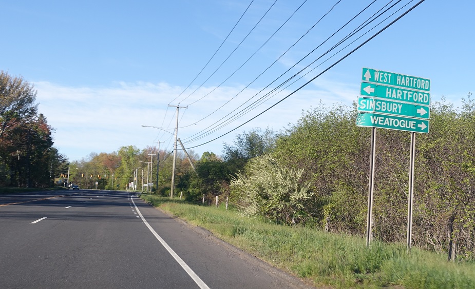 Shortly thereafter we’ll approach CT 185. Follow 185 west to Simsbury and 185 east to Hartford. Stay on 218 for West Hartford.