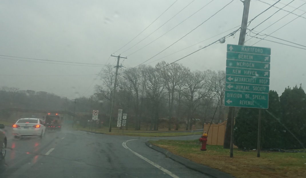 Turn left for SSR 424 north towards the old Cedarcrest Hospital. Keep right for 5/15 south to New Haven, Meriden, and Berlin.