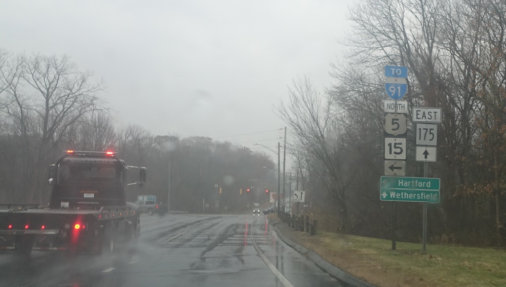 Follow 175 east into Wethersfield. Turn left for 5/15 north to I-91 and Hartford.