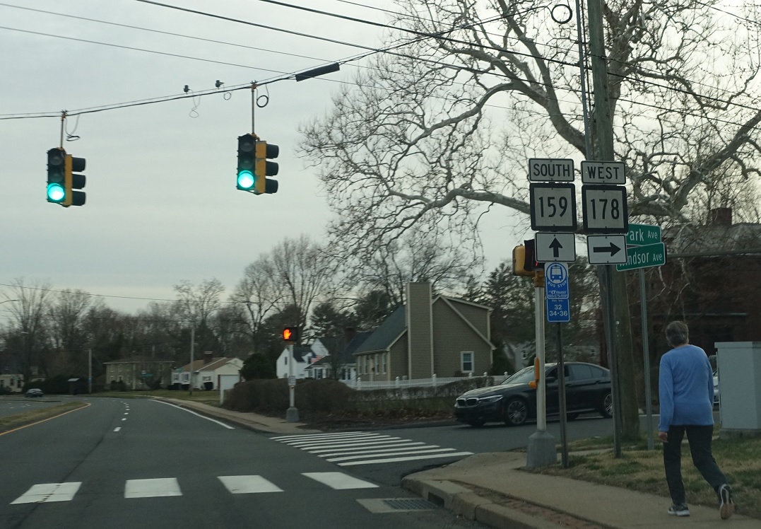 A half mile later, we’ll approach CT 178, which heads west into Bloomfield.