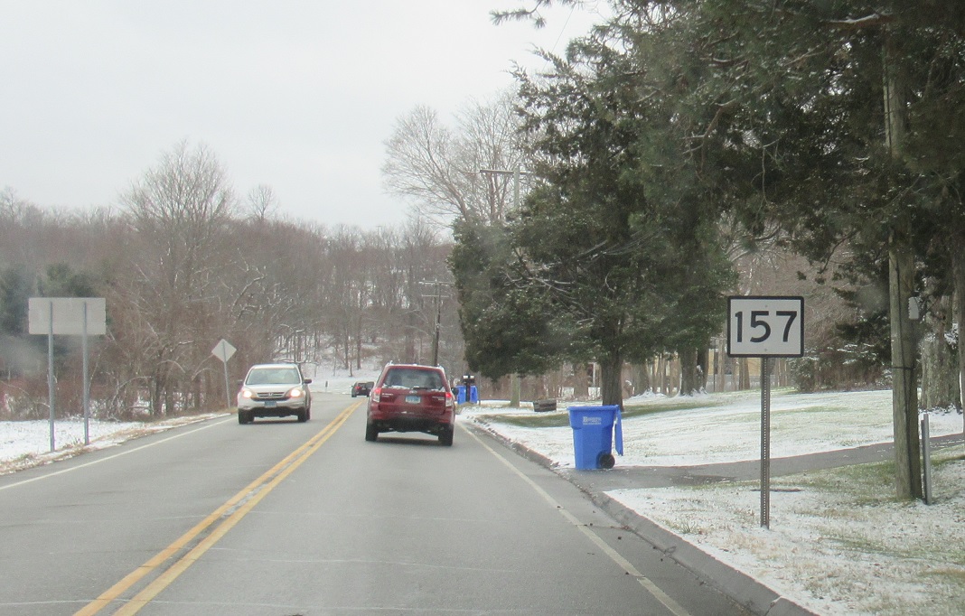 A mile later, we’ll approach the here-poorly signed CT 68. Follow 68 west to I-91 and 68 east to CT 17. CT 157 ends.