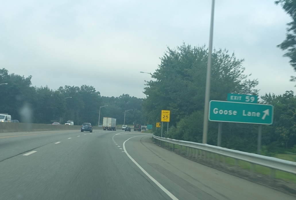 Exit for Goose Ln/SR 718, which is a quick connector to US 1.