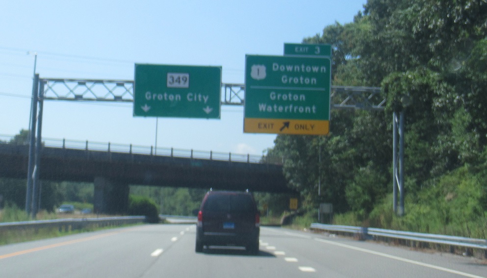 Immediately after CT 349 begins, we’ll come to an interchange with US 1. Exit for US 1 in both directions.