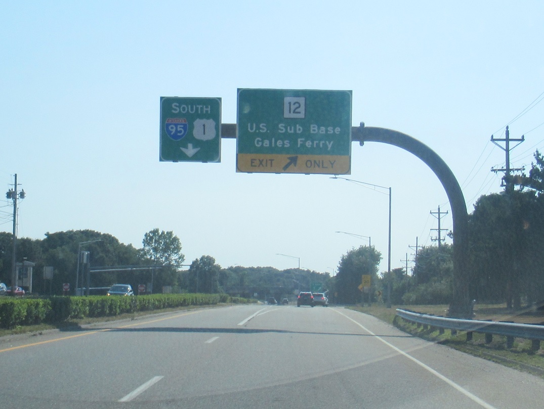 Exit right for CT 12 north. Stay straight to merge onto I-95/US 1 south. There is no access to 95/1 north from here. SR 900 is located within this interchange and serves to connect 95 south to 12 north and 1 north.